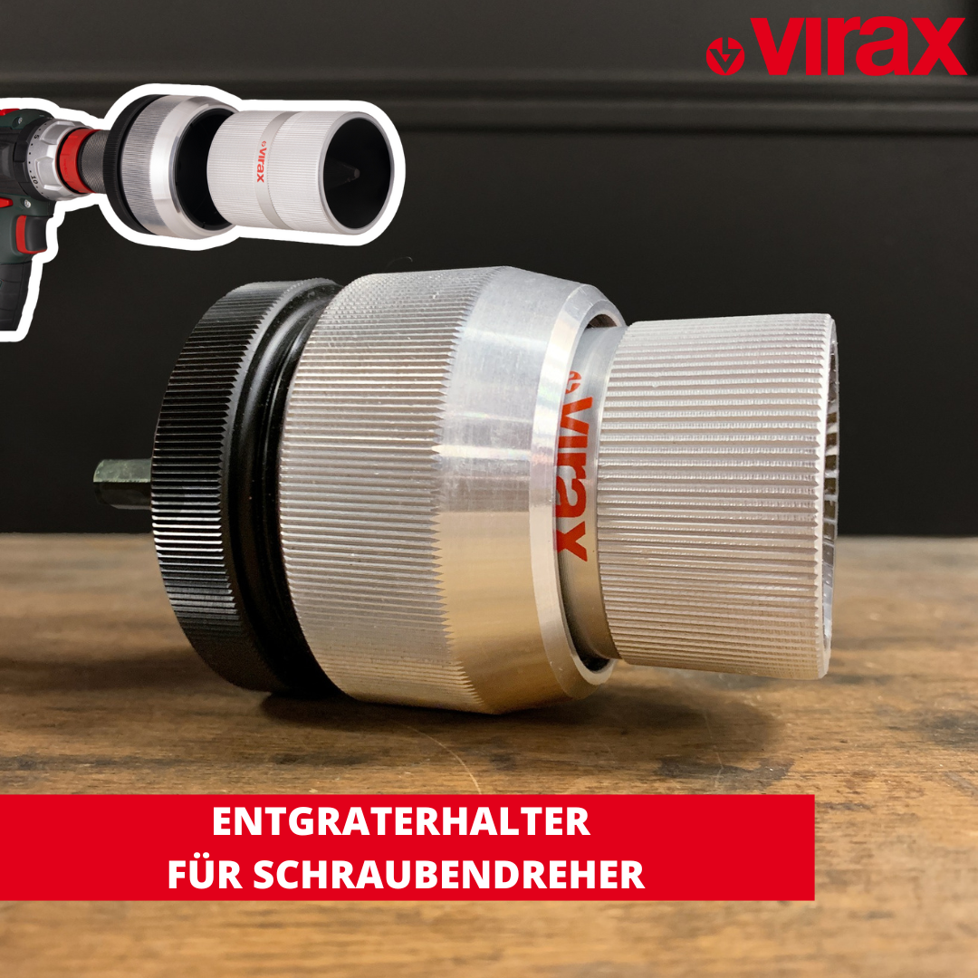 Verwandeln Sie Ihren Virax 22125x Multimaterial-Entgrater dank des Schraubendreher-Entgraterhalters ganz einfach in eine vollwertige Entgratmaschine.